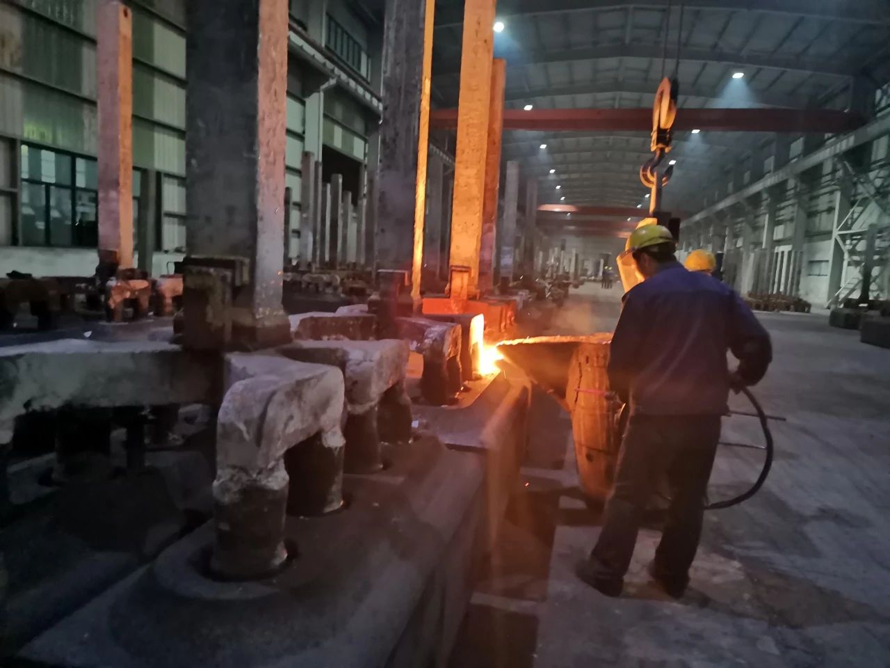 夜晚的時(shí)針指向22點(diǎn),廣元林豐組裝運(yùn)輸車間里燈火通明,中頻爐的轟鳴聲、行車電機(jī)的剎車聲、壓脫機(jī)的動(dòng)作聲,此起彼伏,當(dāng)班員工緊張有序地進(jìn)行著各種操作。鋼爪清理機(jī)旁的員工,雖已汗流浹背,但他們?nèi)匀徽J(rèn)真地清理著每一組鋼爪。