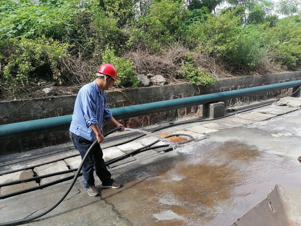 行政科室人員主動接管電解分廠散水坡清掃工作,每周定期對電解廠房周圍散水坡進行徹底清潔,不僅減輕了電解工段工作量,且改善了現場環境。