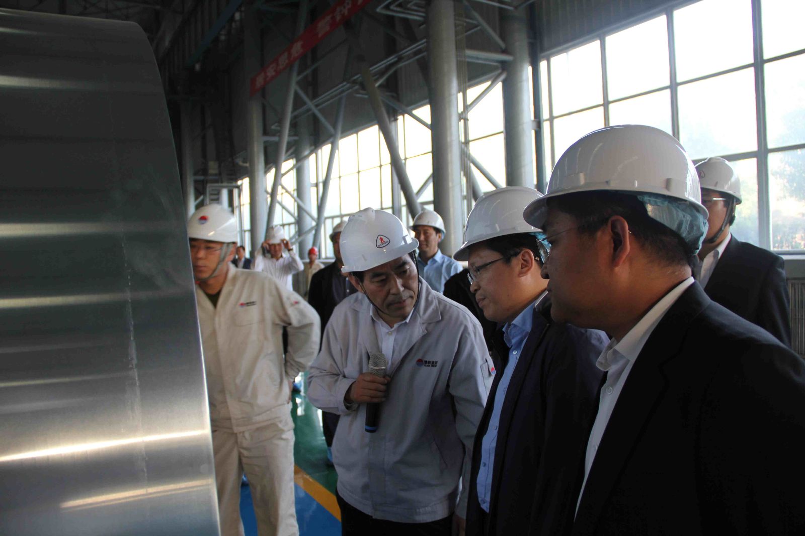 在高精鋁分公司,受集團公司張洪恩董事長委托,集團公司黨委書記、副董事長馬路平向王廣國一行簡要介紹了公司概況及轉型升級情況;集團公司總經理王元明簡要介紹了高精鋁項目建設及生產經營情況。