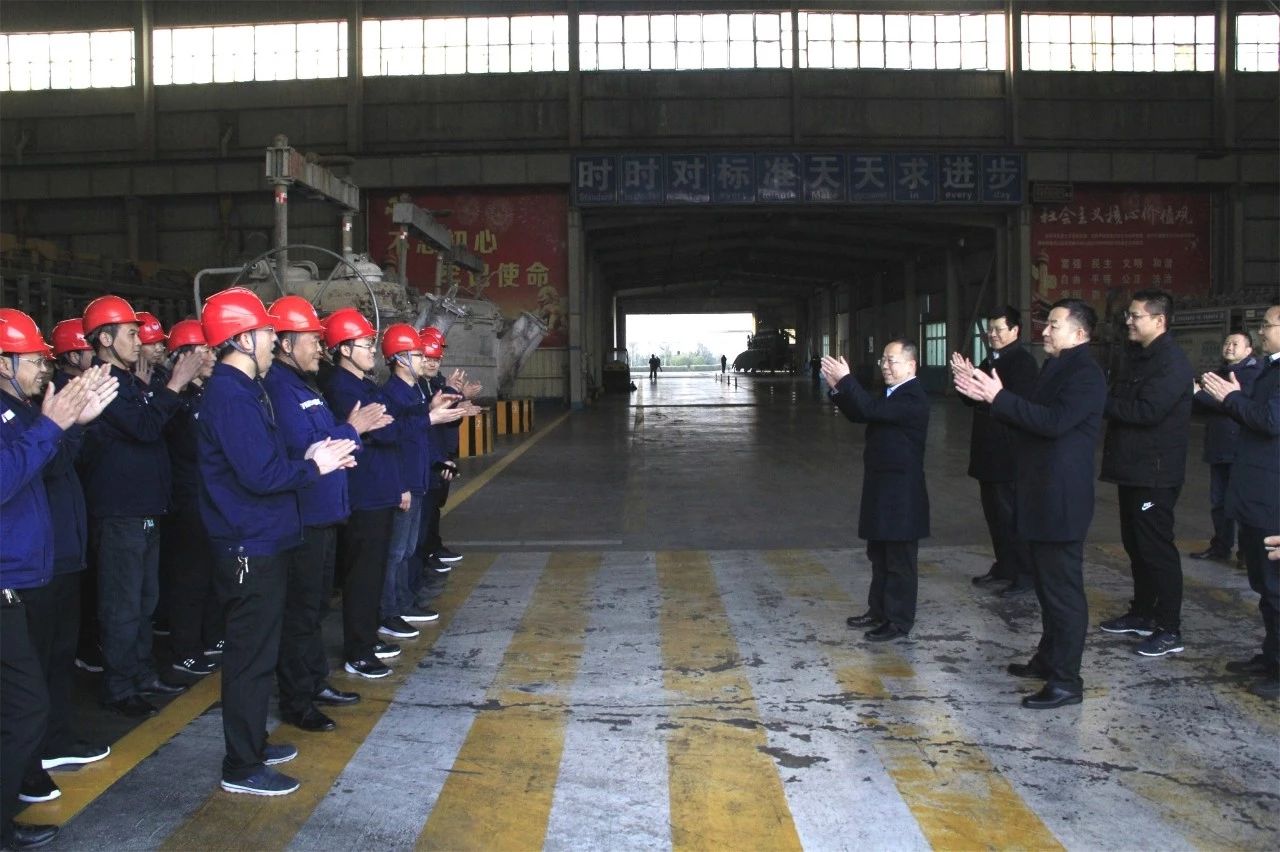在中孚炭素公司,崔紅松董事長勉勵炭素公司創新思路,開拓性工作,2019年不斷保持行業領先地位,綠色環保,節能高效,多創效益。