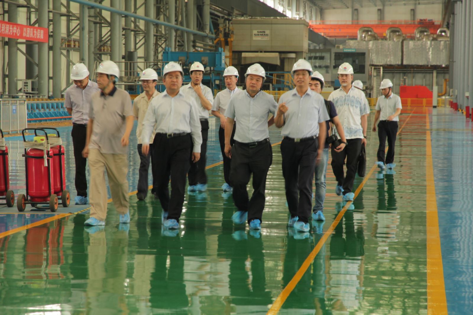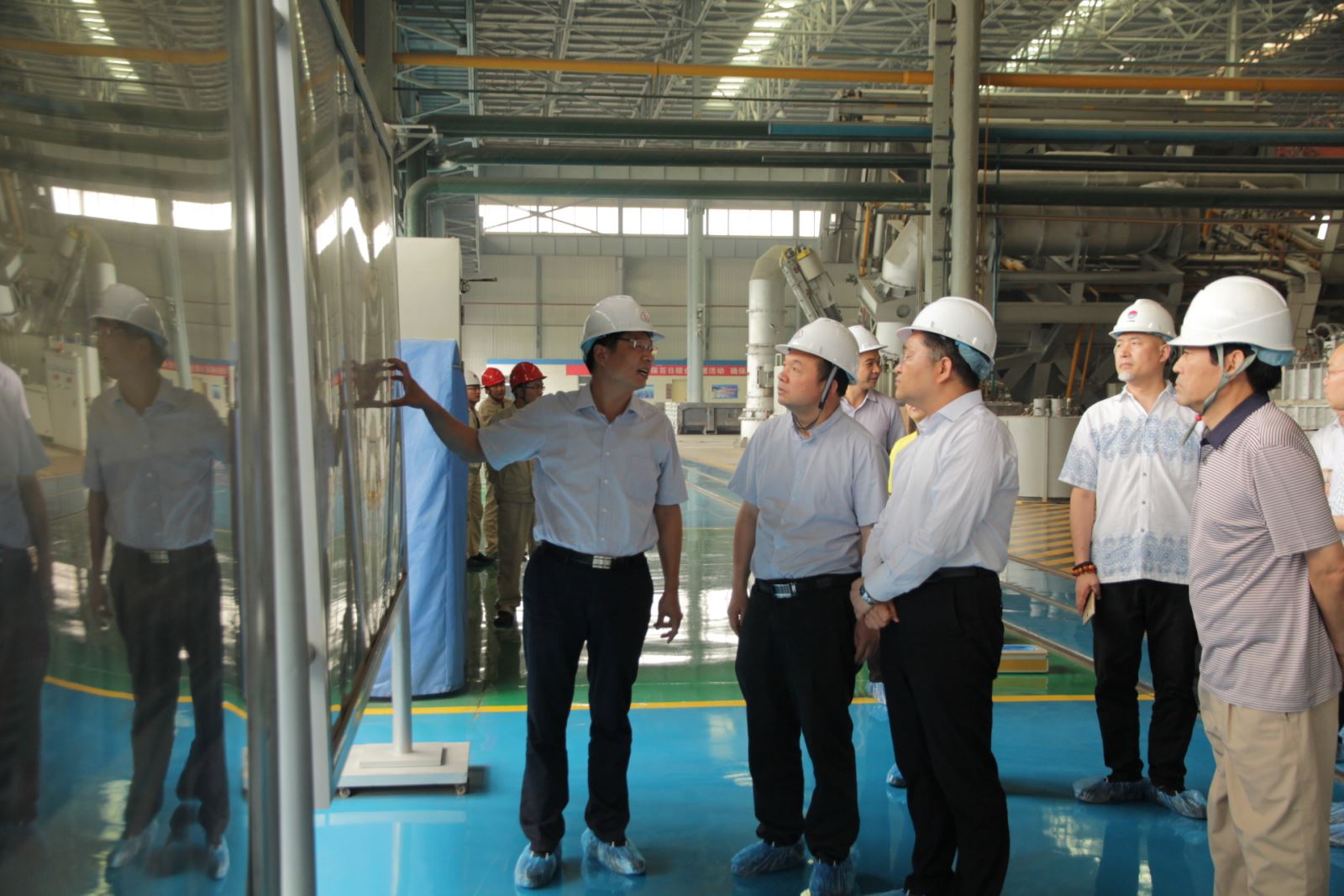 在園區(qū)觀景臺,受集團(tuán)公司張洪恩董事長委托,王元明總經(jīng)理向楊建國簡要介紹了公司概況和發(fā)電、電解鋁、鋁精深加工等產(chǎn)業(yè)情況。在高精鋁公司,楊建國認(rèn)真聽取了高精鋁項(xiàng)目建設(shè)及生產(chǎn)經(jīng)營情況, 對集團(tuán)公司在轉(zhuǎn)型升級方面的做法、經(jīng)驗(yàn)以及取得的成果給予充分肯定,同時希望公司按照既定的目標(biāo)計(jì)劃,加快項(xiàng)目建設(shè)進(jìn)度,實(shí)現(xiàn)如期投產(chǎn),為豫聯(lián)產(chǎn)業(yè)集聚區(qū)的全面協(xié)調(diào)發(fā)展起到積極推動作用。